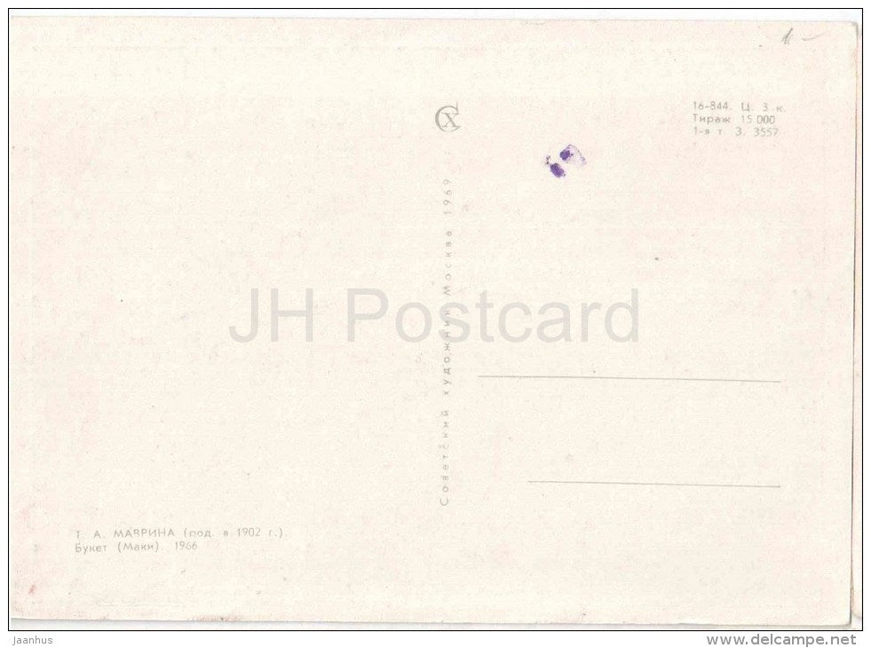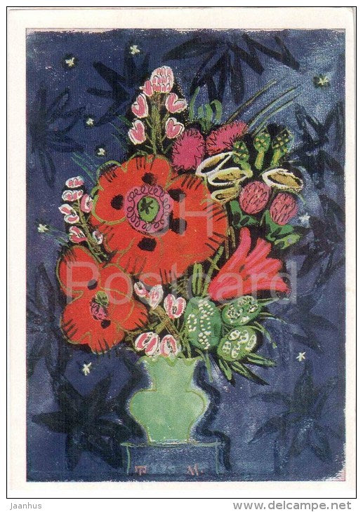 Gemälde von T. Mavrina – Ein Strauß Mohnblumen, 1966 – Blumen – russische Kunst – unbenutzt