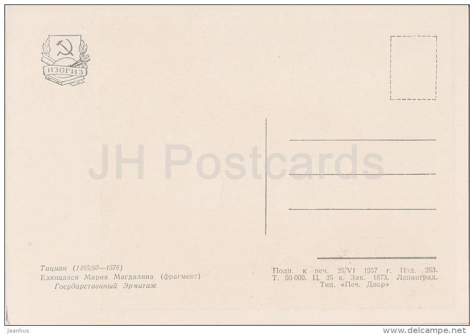 Gemälde von Tizian – Büßende Maria Magdalena, Fragment – italienische Kunst – Russland UdSSR – 1957 – unbenutzt