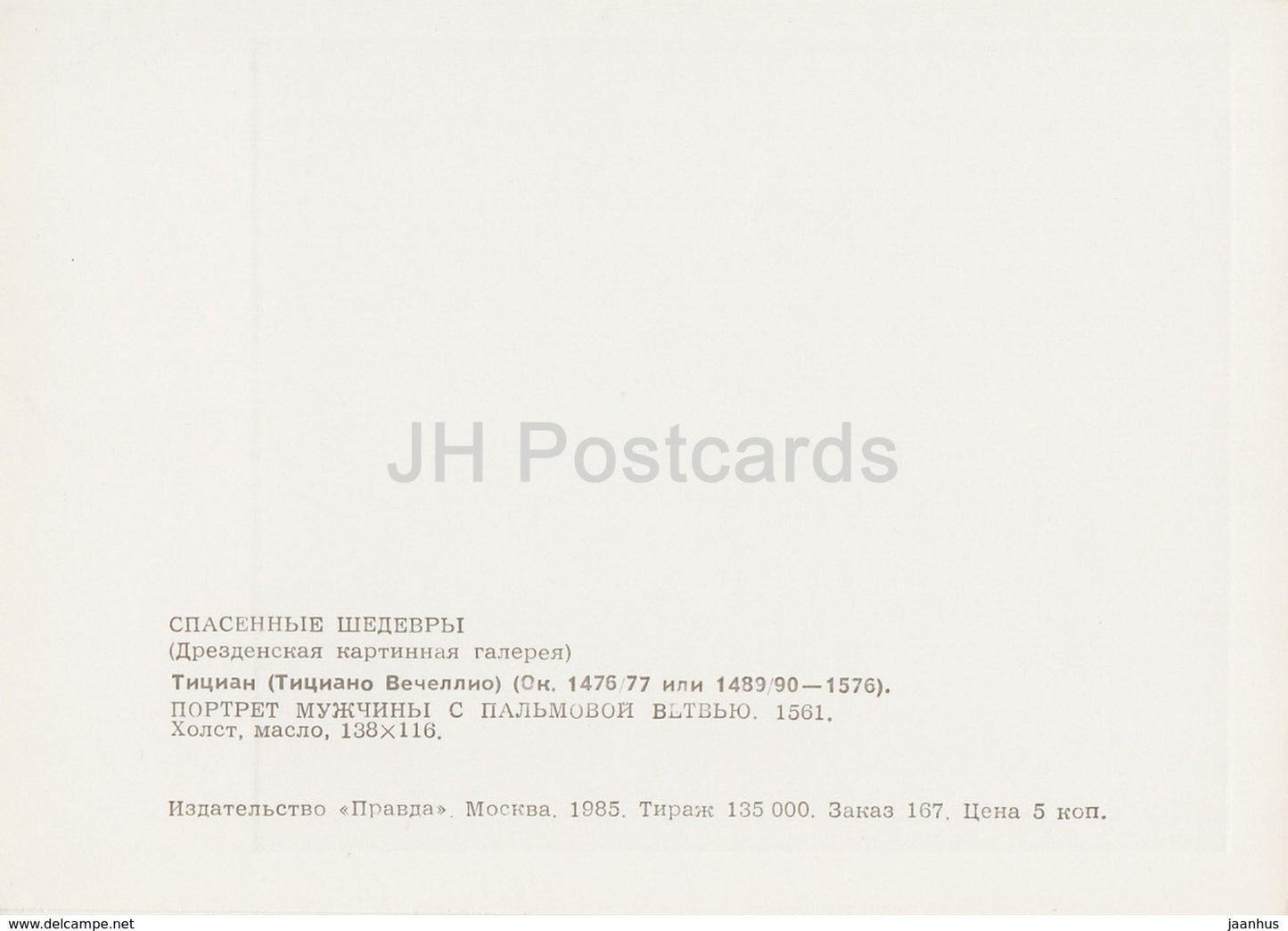 Gemälde von Tizian – Porträt eines Mannes mit Palmzweig, 1561 – italienische Kunst – 1985 – Russland UdSSR – unbenutzt