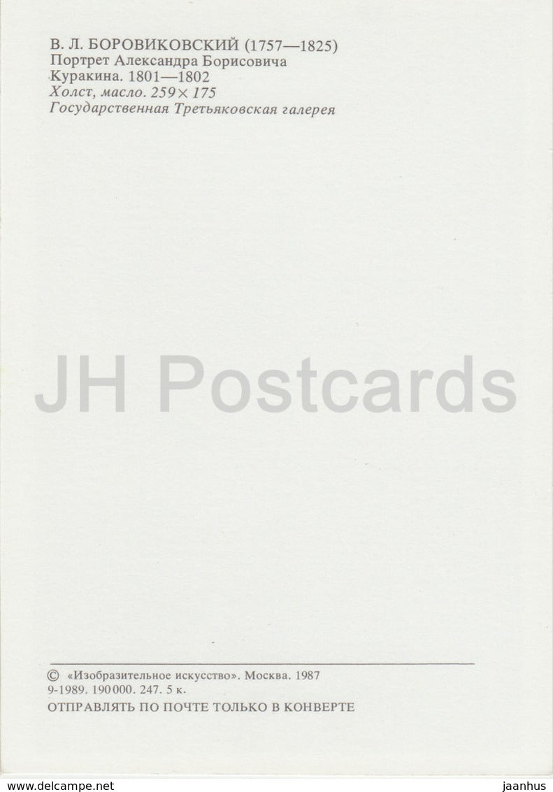 Gemälde von V. Borovikovsky – Porträt von Kurakin – Pavel I. Skulptur – Russische Kunst – 1987 – Russland UdSSR – unbenutzt