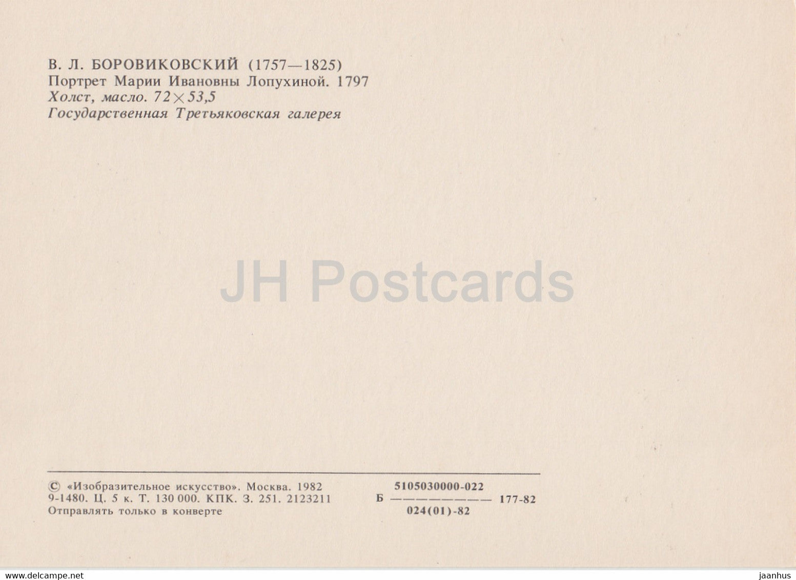Gemälde von V. Borovikovsky – Porträt von Maria Lopukhina – Russische Kunst – 1982 – Russland UdSSR – unbenutzt