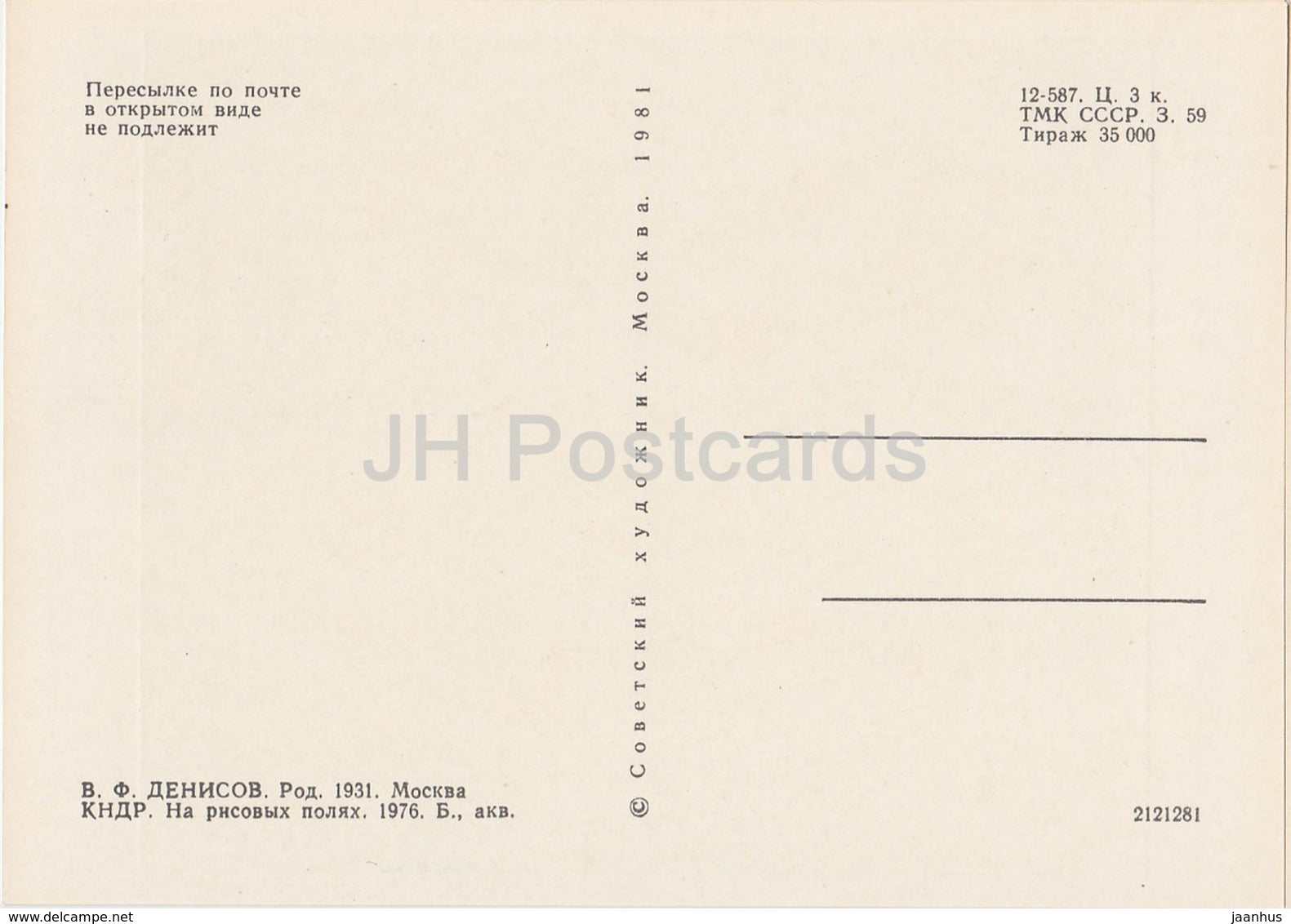 Gemälde von V. Denisov – Auf den Reisfeldern. DVRK – Traktor – Russische Kunst – 1981 – Russland UdSSR – unbenutzt