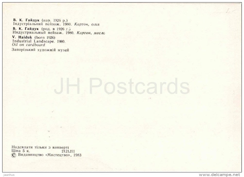 Gemälde von V. Haiduk – Industrielandschaft, 1980 – ukrainische Kunst – unbenutzt