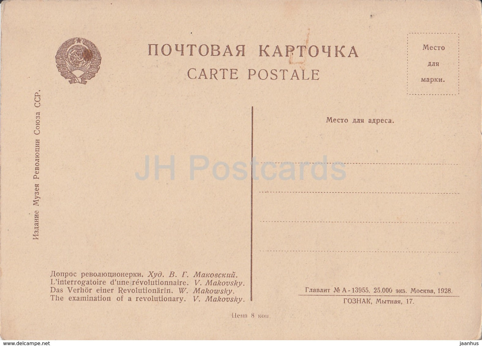 Gemälde von V. Makovsky – Die Untersuchung eines Revolutionärs – Russische Kunst – 1928 – Russland UdSSR – unbenutzt