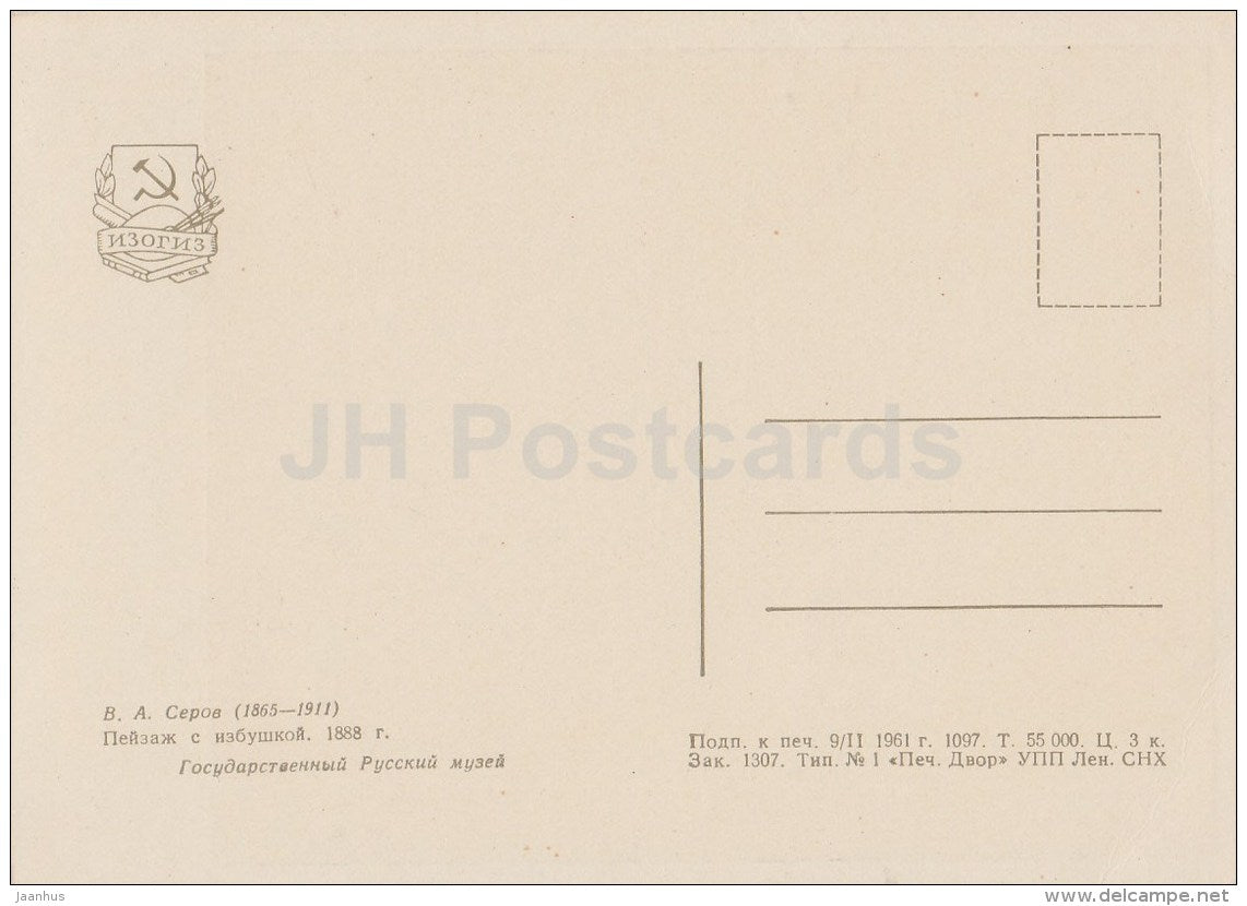 Gemälde von V. Serov – Landschaft mit Hütte, 1888 – Russische Kunst – Russland UdSSR – 1961 – unbenutzt