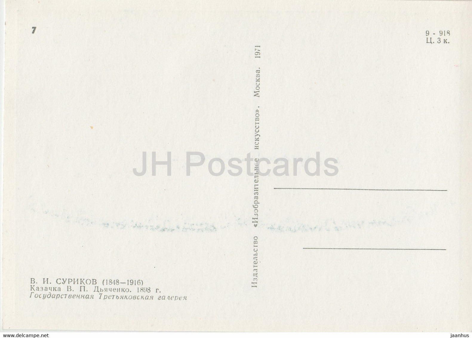 Gemälde von V. Surikov – Kosakenfrau v. Dyachenko – Russische Kunst – 1971 – Russland UdSSR – unbenutzt