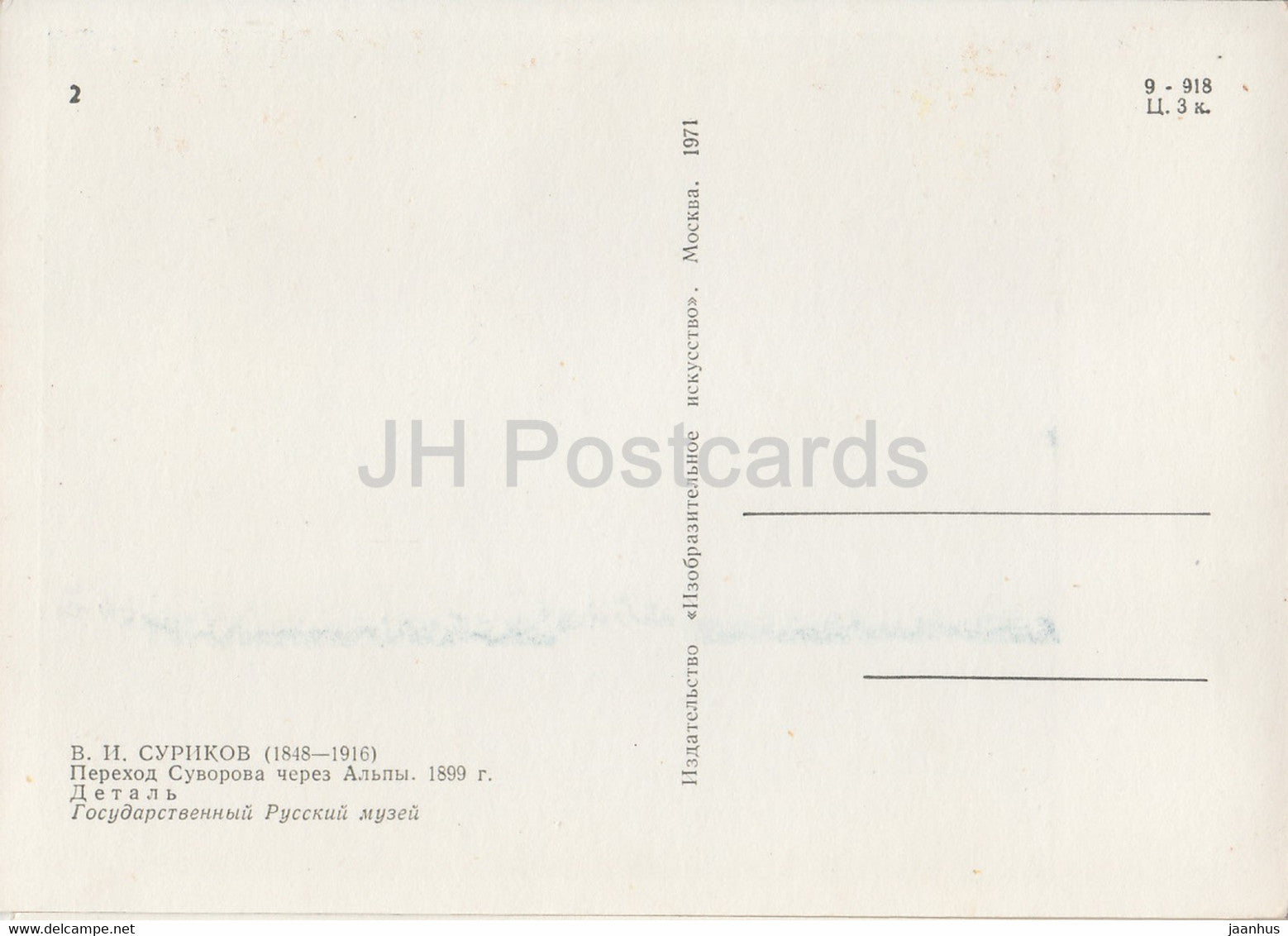 Gemälde von V. Surikov – Suworows Überquerung der Alpen. Detail – Soldaten russische Kunst – 1971 – Russland UdSSR – unbenutzt