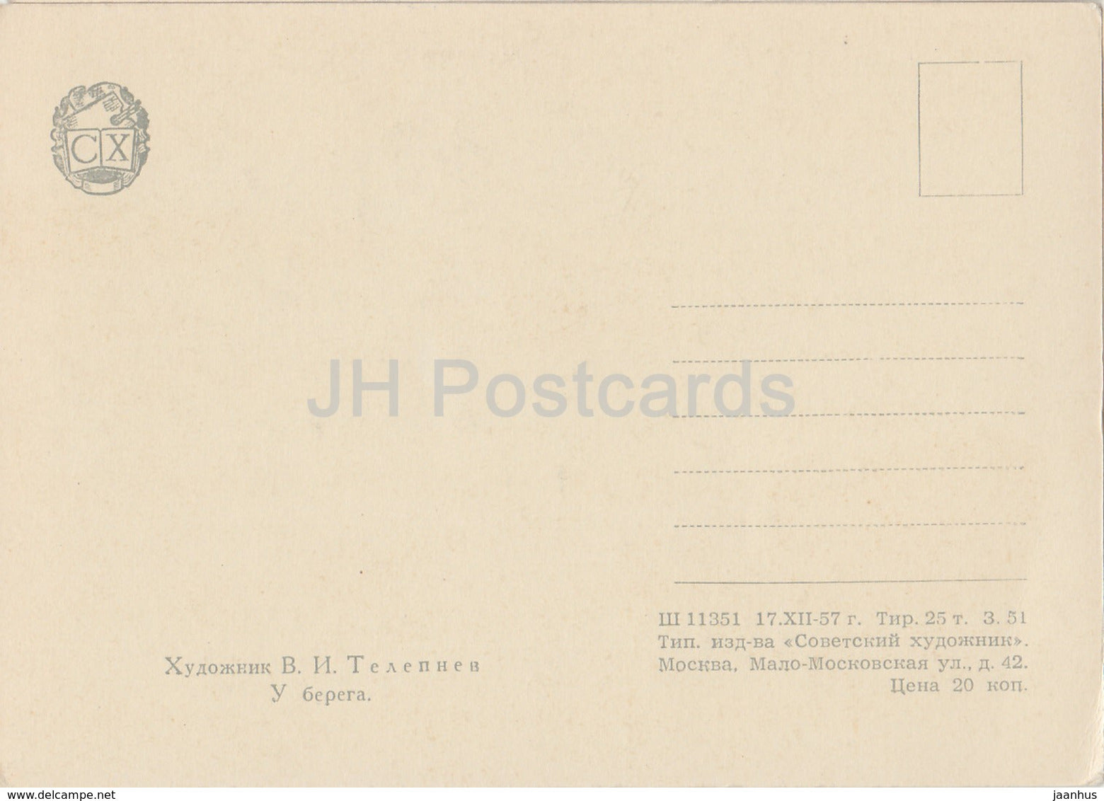 Gemälde von V. Telepnev – An der Küste – Boot – Russische Kunst – 1957 – Russland UdSSR – unbenutzt