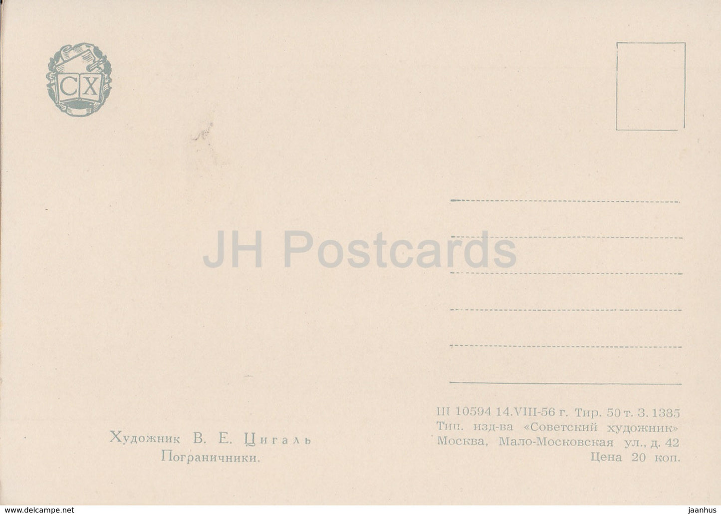 Gemälde von V. Tsigal – Grenzschutzbeamte – Russische Kunst – 1956 – Russland UdSSR – unbenutzt