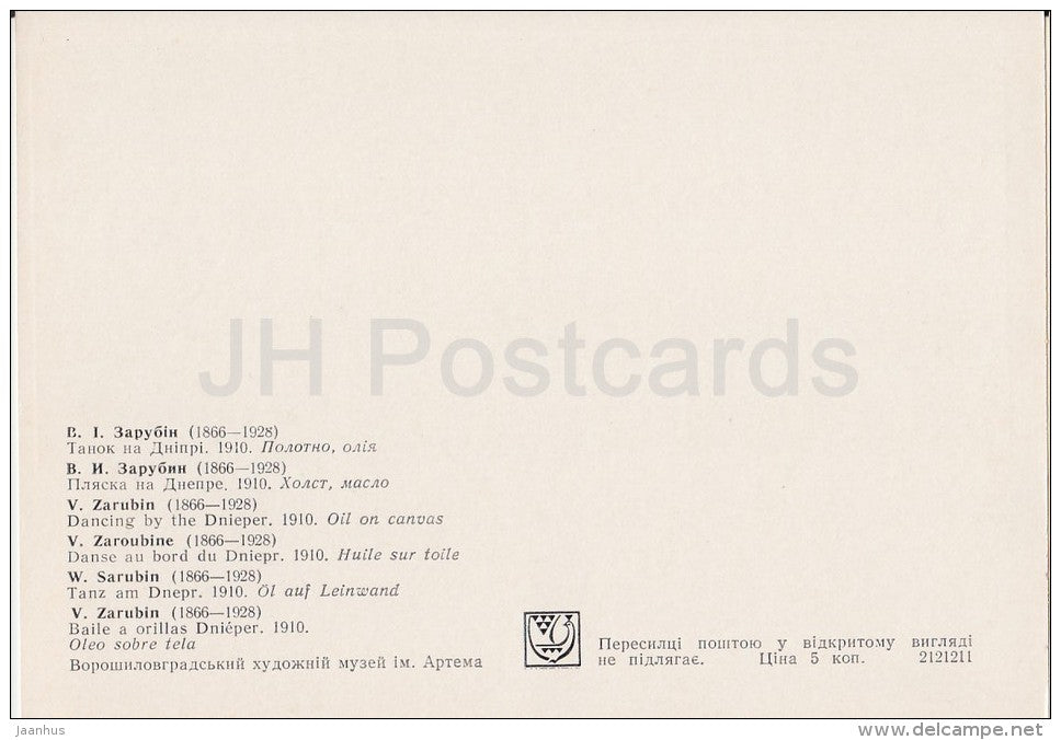 Gemälde von V. Zarubin – Tanz am Dnjepr, 1910 – Tanz – Russische Kunst – 1977 – Russland UdSSR – unbenutzt