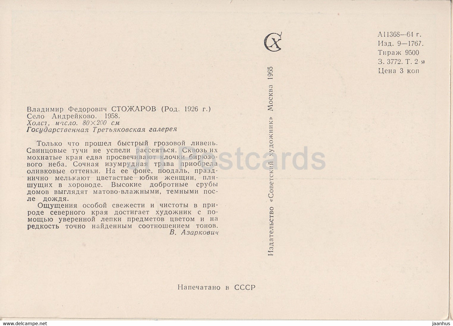 Gemälde von Vladimir Stozharov – Dorf Andreykovo – Russische Kunst – 1965 – Russland UdSSR – unbenutzt