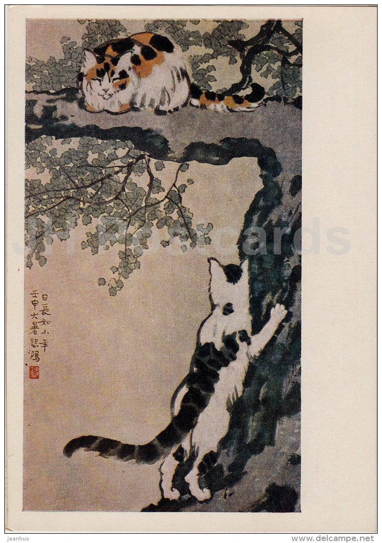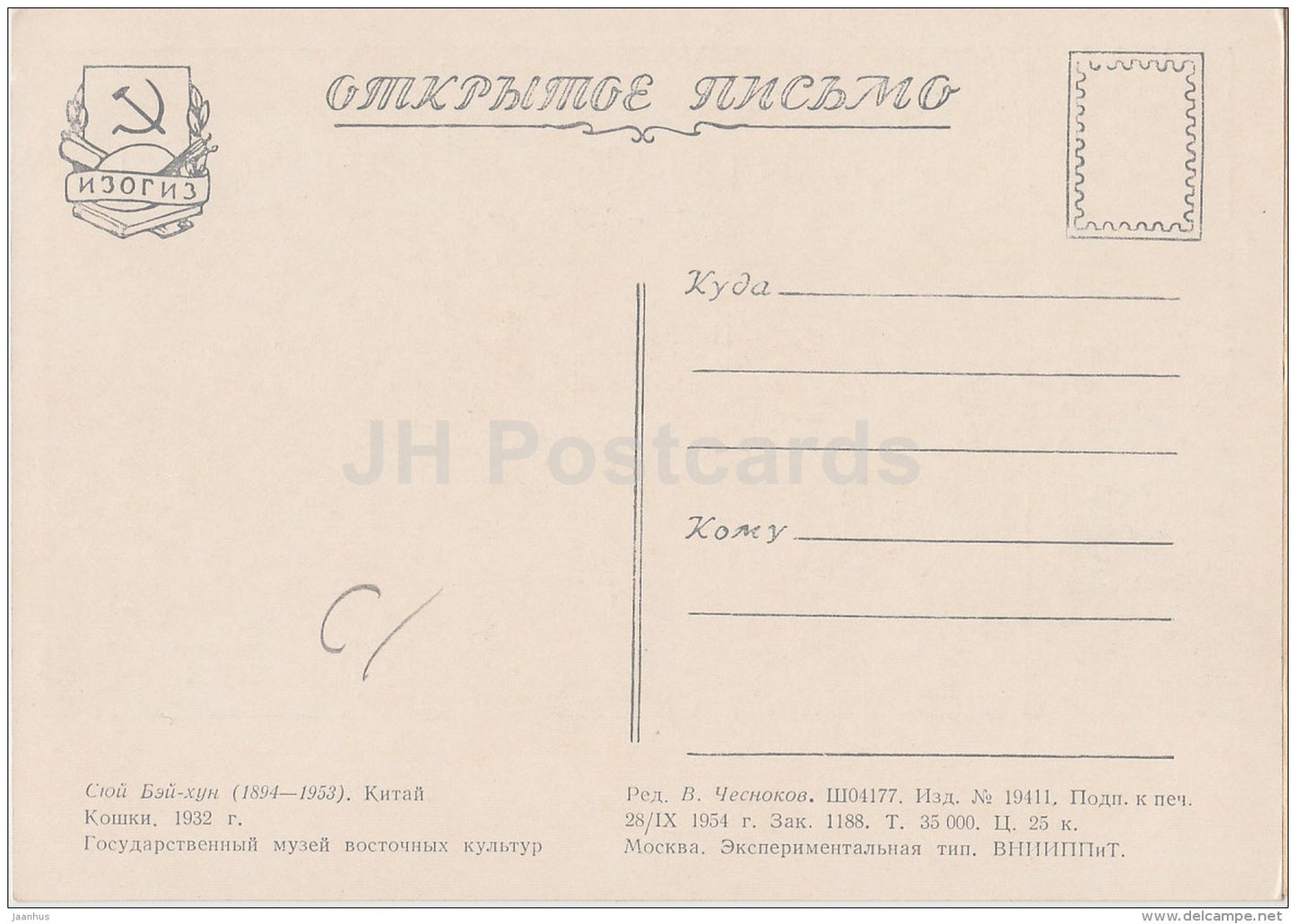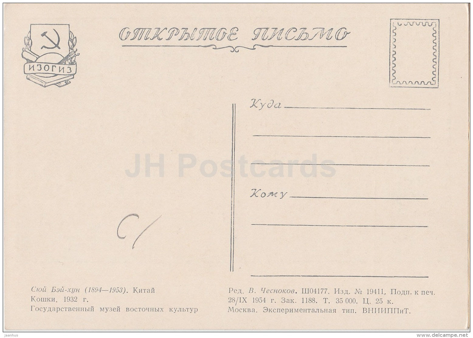 Gemälde von Xu Beihong – Katzen, 1932 – Chinesische Kunst – 1954 – Russland UdSSR – unbenutzt