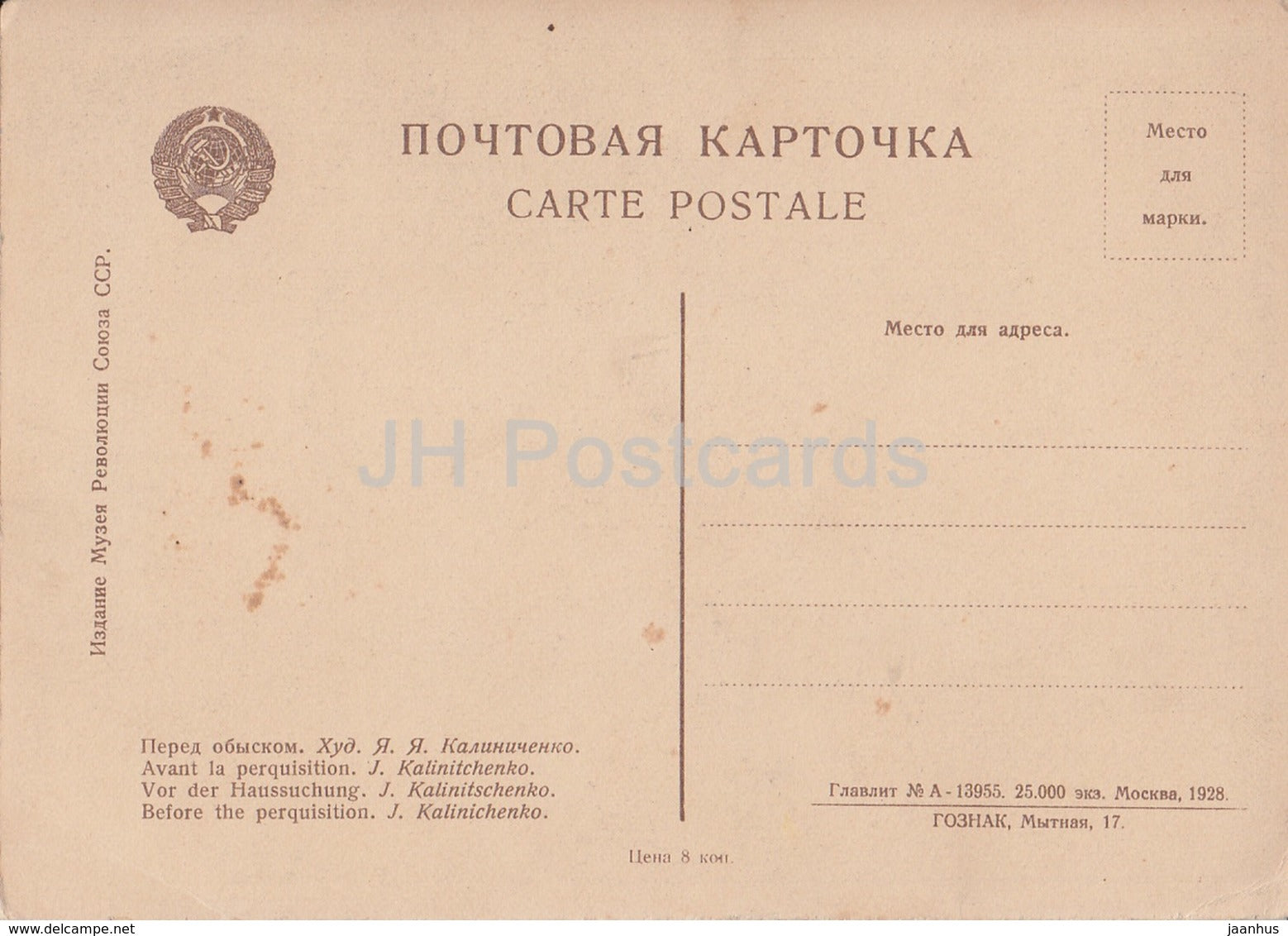 Gemälde von Y. Kalinitschenko – Vor der Beschlagnahmung – Russische Kunst – 1928 – Russland UdSSR – unbenutzt