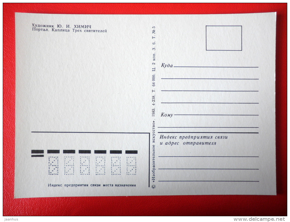 Gemälde von Yuri Khimich. Kapelle der Heiligen Drei Heiligen, Portal. Lemberg. Lemberg – ukrainische Kunst – unbenutzt