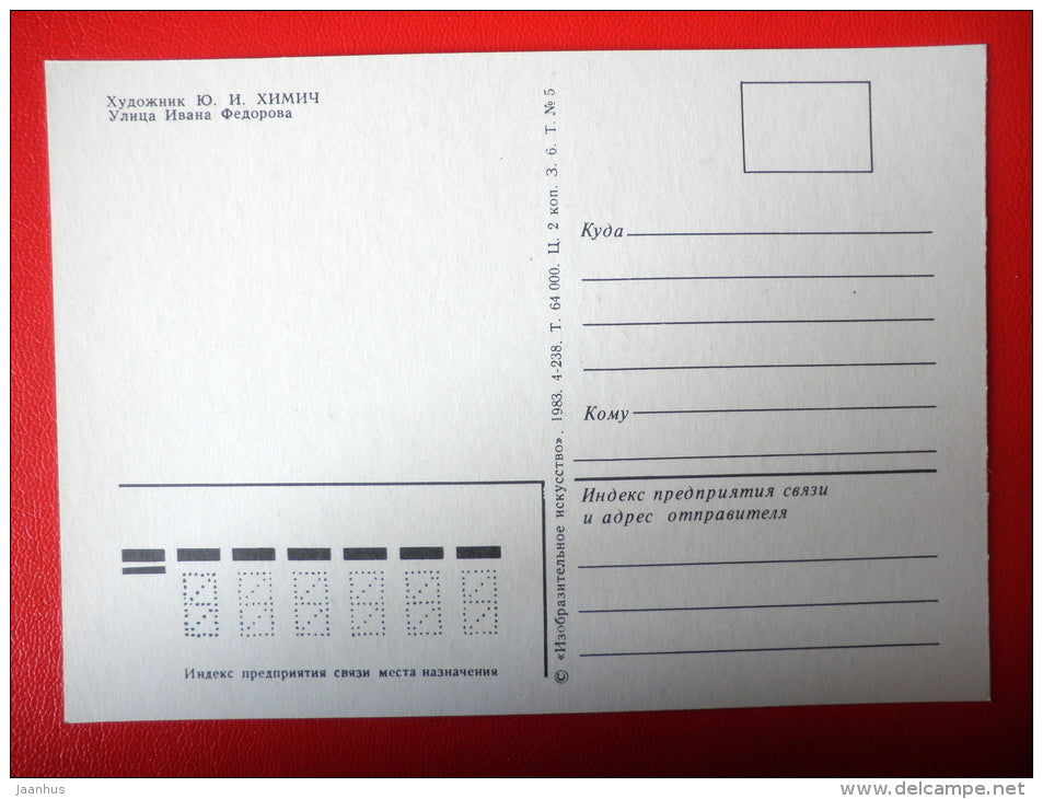 Gemälde von Yuri Khimich. Iwan-Fjodorow-Straße. Lemberg. Lemberg – ukrainische Kunst – unbenutzt