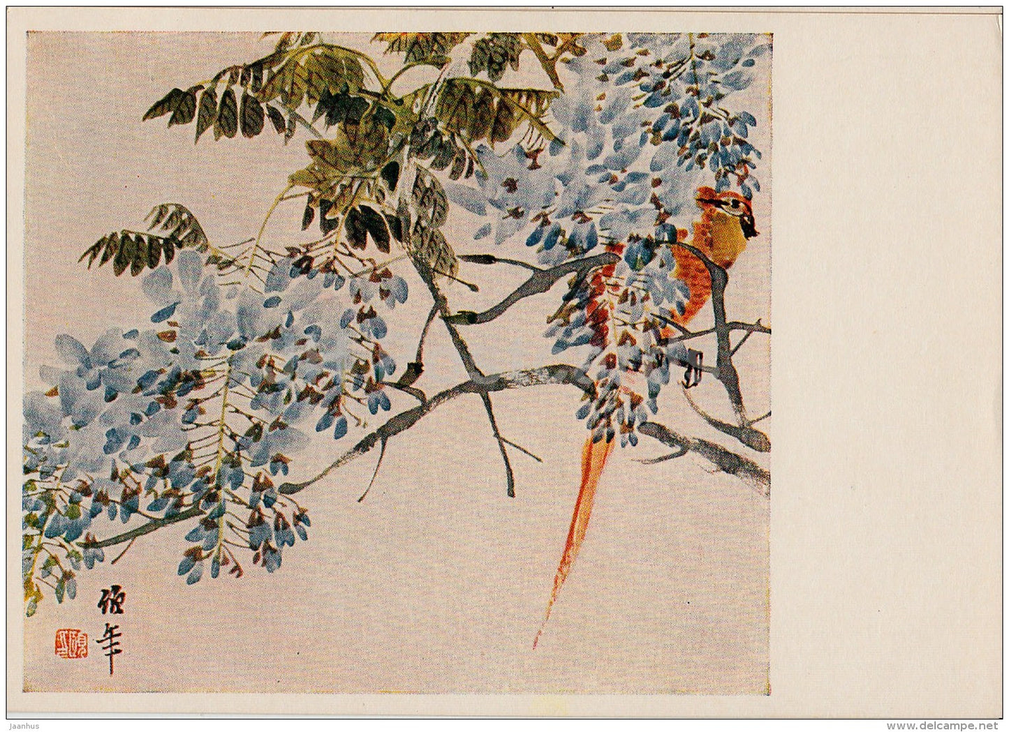 Gemälde von Zheng Bo-Nyang – Glyzinien – Chinesische Kunst – 1956 – Russland UdSSR – unbenutzt