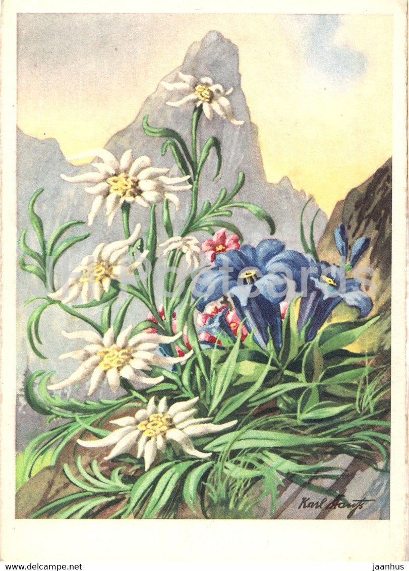 Gemälde - Edelweiß - Blumen - Korn Künstlerkarte - 527 - Deutsche Kunst - Deutschland - unbenutzt