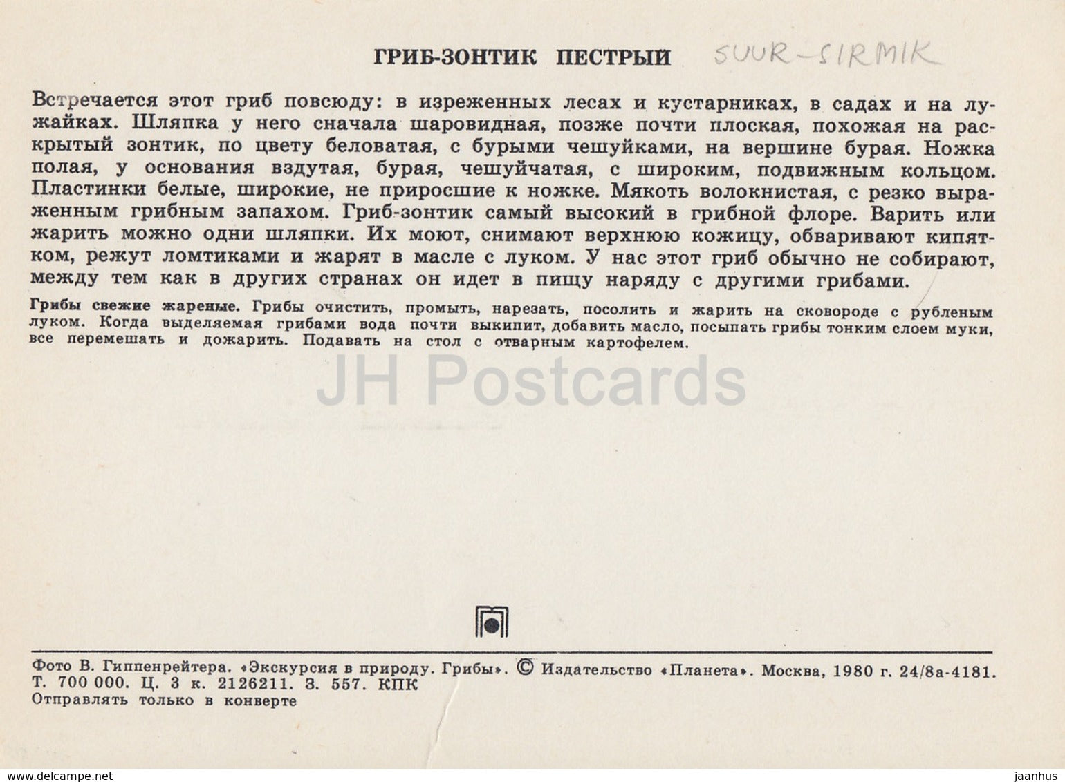 Parasolpilz - Macrolepiota procera - Pilze - 1980 - Russland UdSSR - unbenutzt