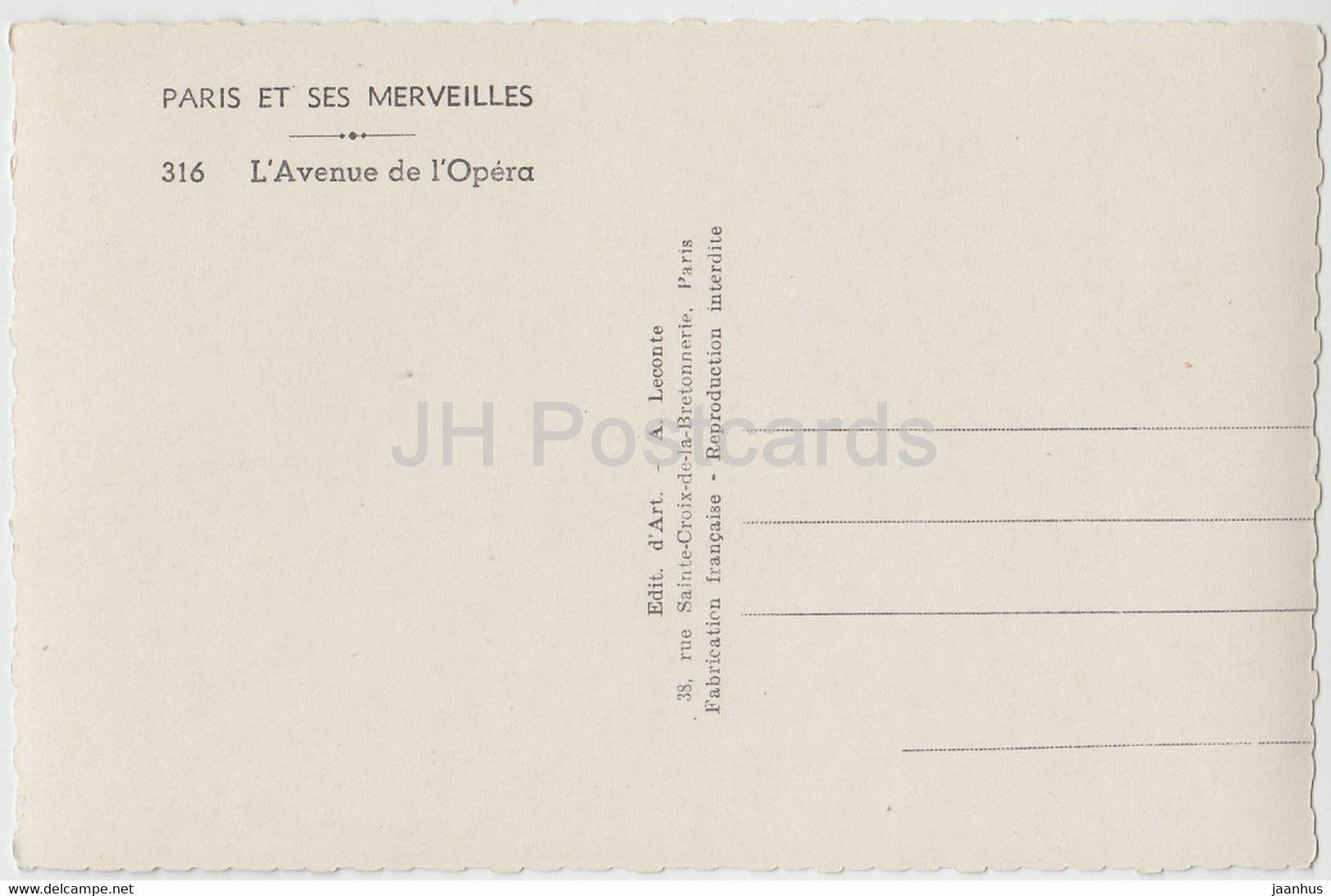 Paris Et Ses Merveilles - L'Avenue de l'Opera - 316 - alte Postkarte - Frankreich - unbenutzt