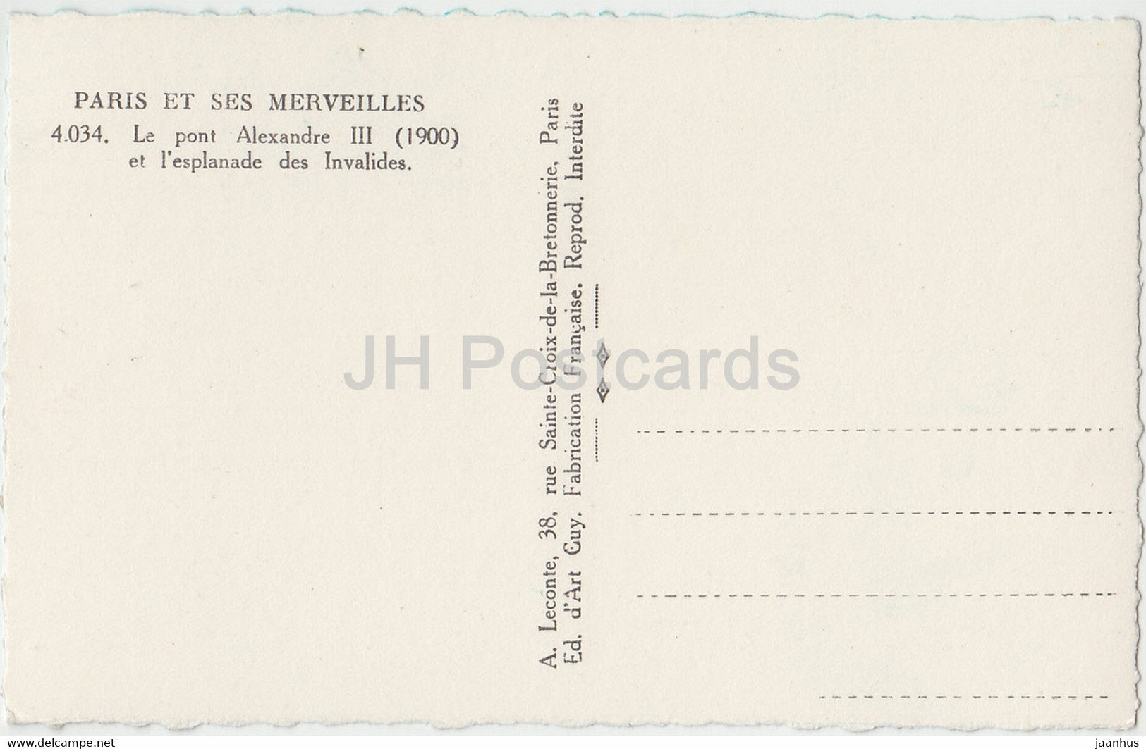 Paris - Le Pont Alexandre III et l'esplanade des Invalides - alte Postkarte - Frankreich - unbenutzt