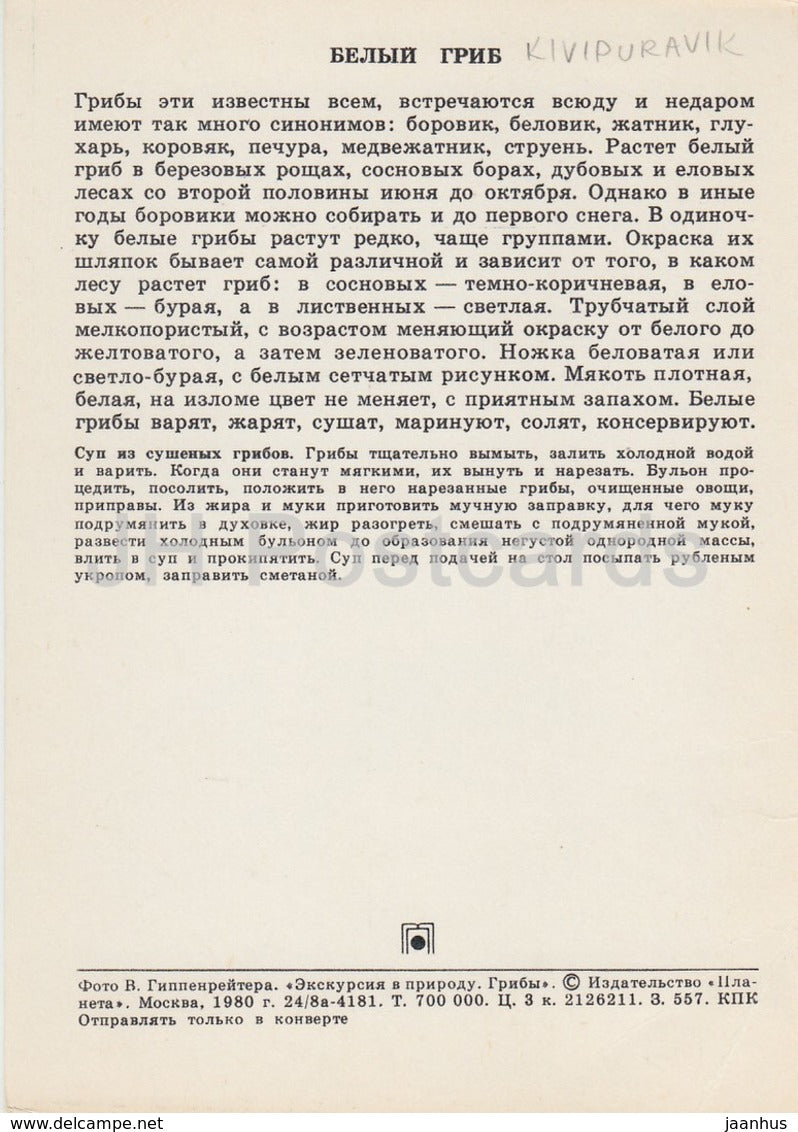 Penny Bun Pilz - Boletus edulis - Pilze - 1980 - Russland UdSSR - unbenutzt