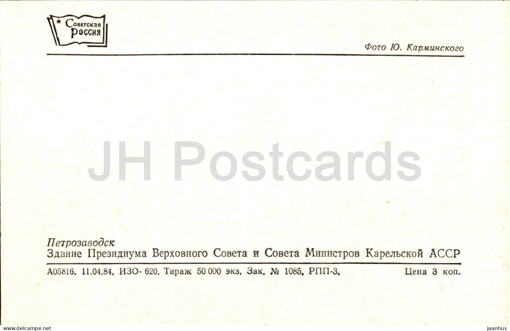 Petrosawodsk – Gebäude des Präsidiums des Obersten Rates von Karelien – 1984 – Russland UdSSR – unbenutzt