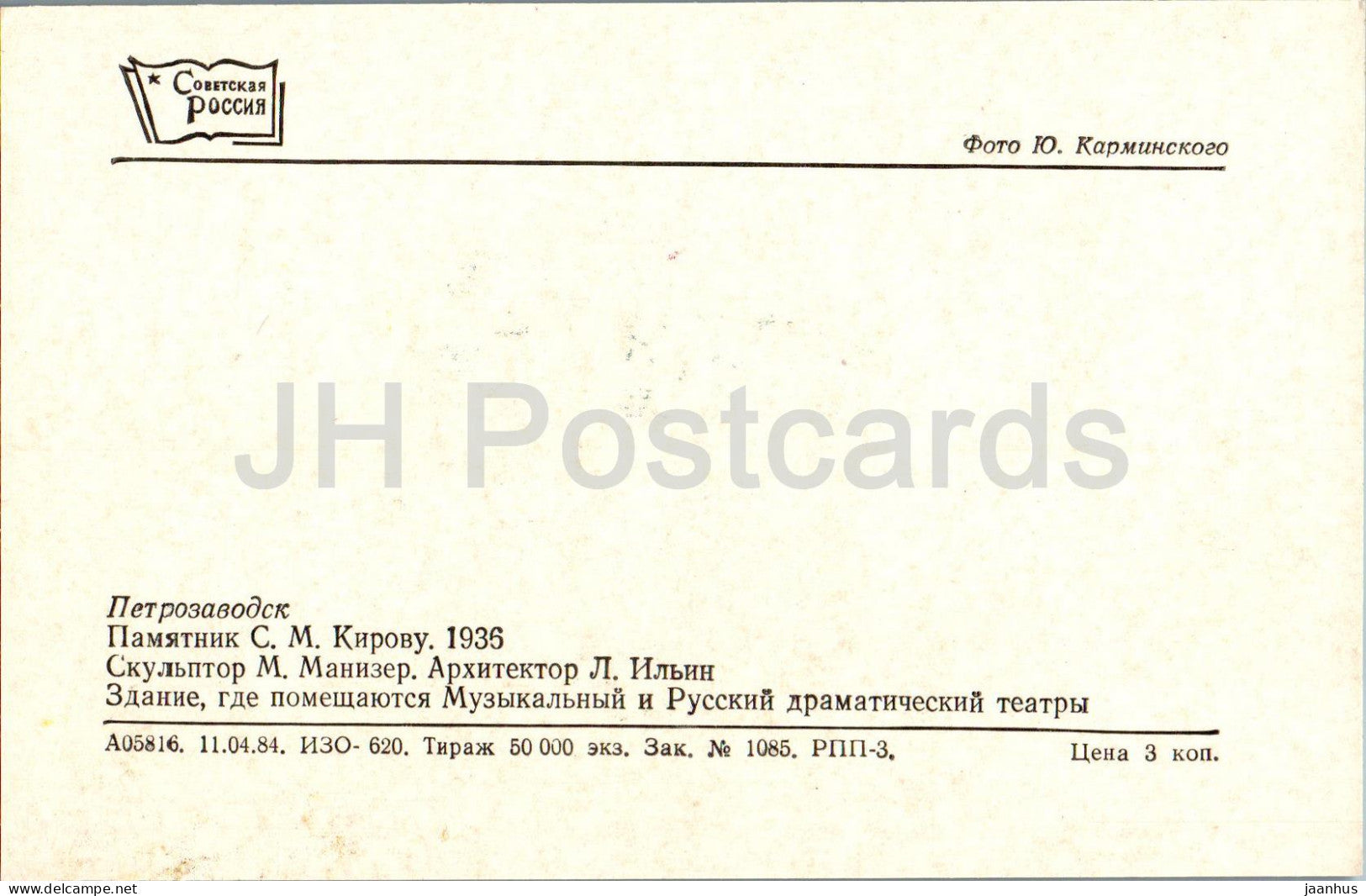 Petrosawodsk - Kirow-Denkmal - Gebäude des Musik- und Russischen Dramatheaters - 1984 - Russland UdSSR - unbenutzt