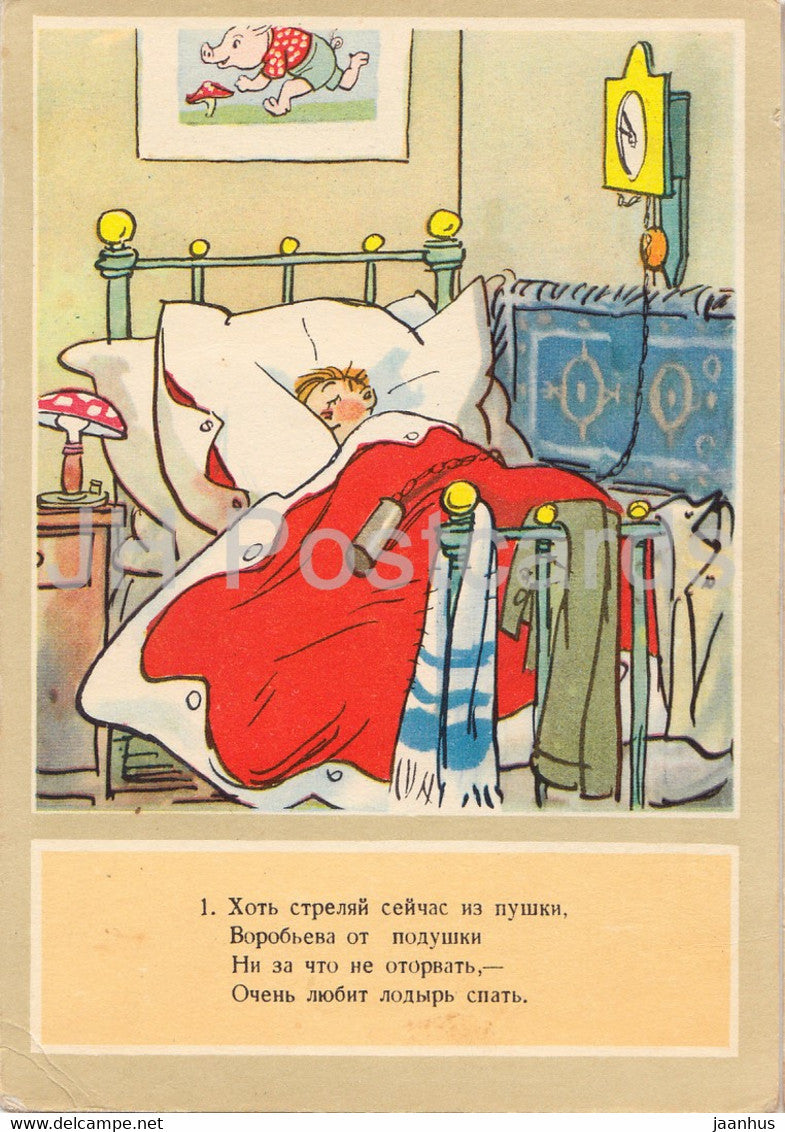 Petya Vorobyev – schlafend – Illustration von Semyonov – 1959 – alte Postkarte – Russland UdSSR – unbenutzt