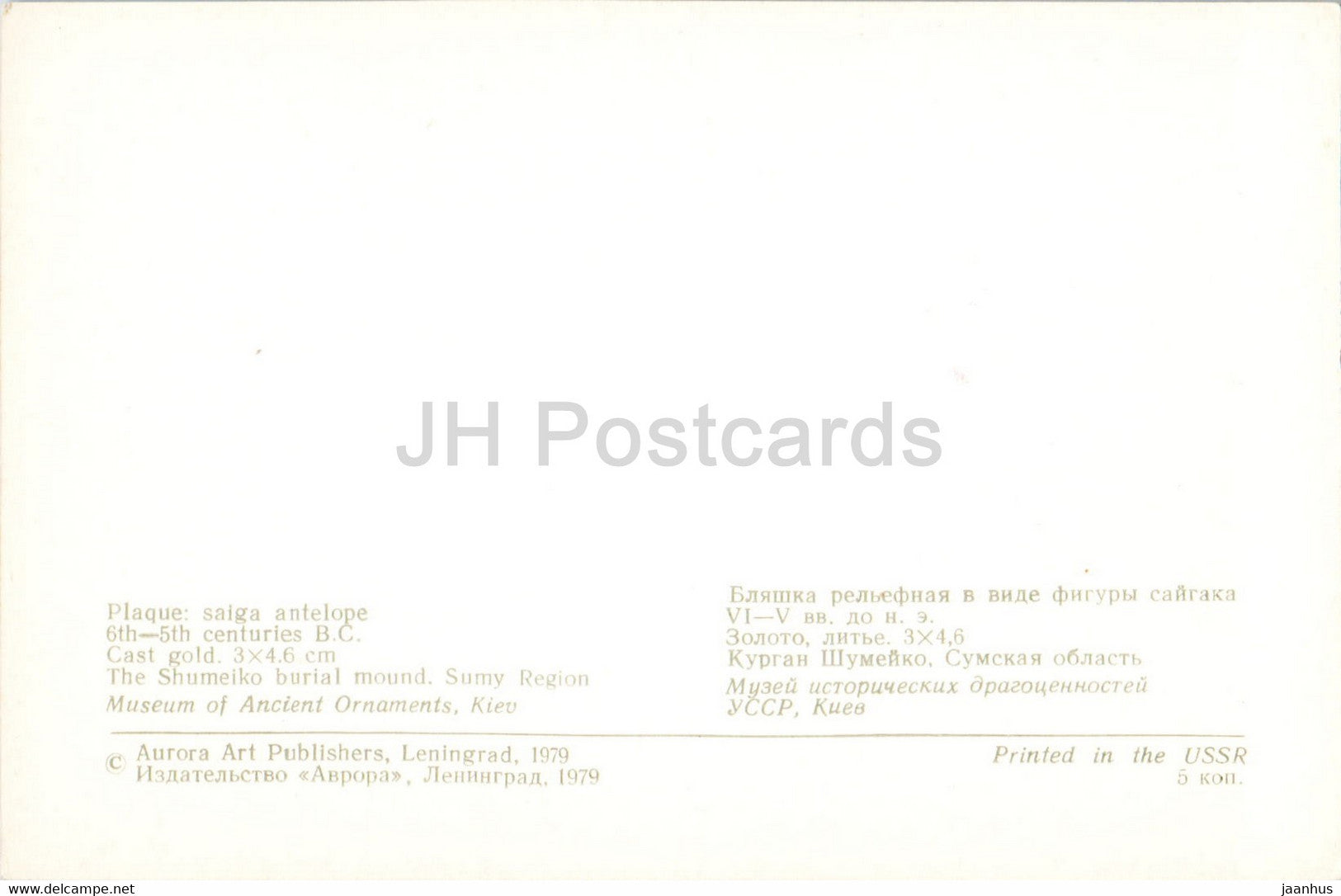 Plakette – Saiga-Antilope – Shumeiko-Begräbnis – Goldschmiedekunst aus dem 6.–2. Jahrhundert v. Chr. – Antike Kunst – 1979 – Russland UdSSR – unbenutzt