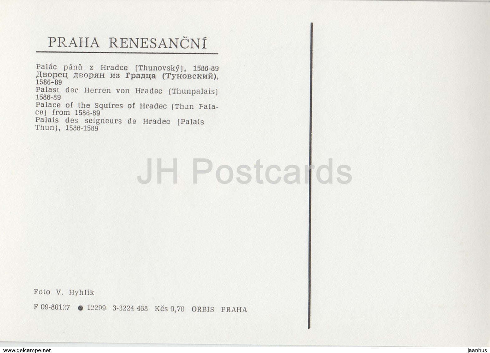 Praha - Prag - Palast der Gutsherren von Hradec - Thun - Renaissance-Prag - Tschechoslowakei - Tschechische Republik - unbenutzt