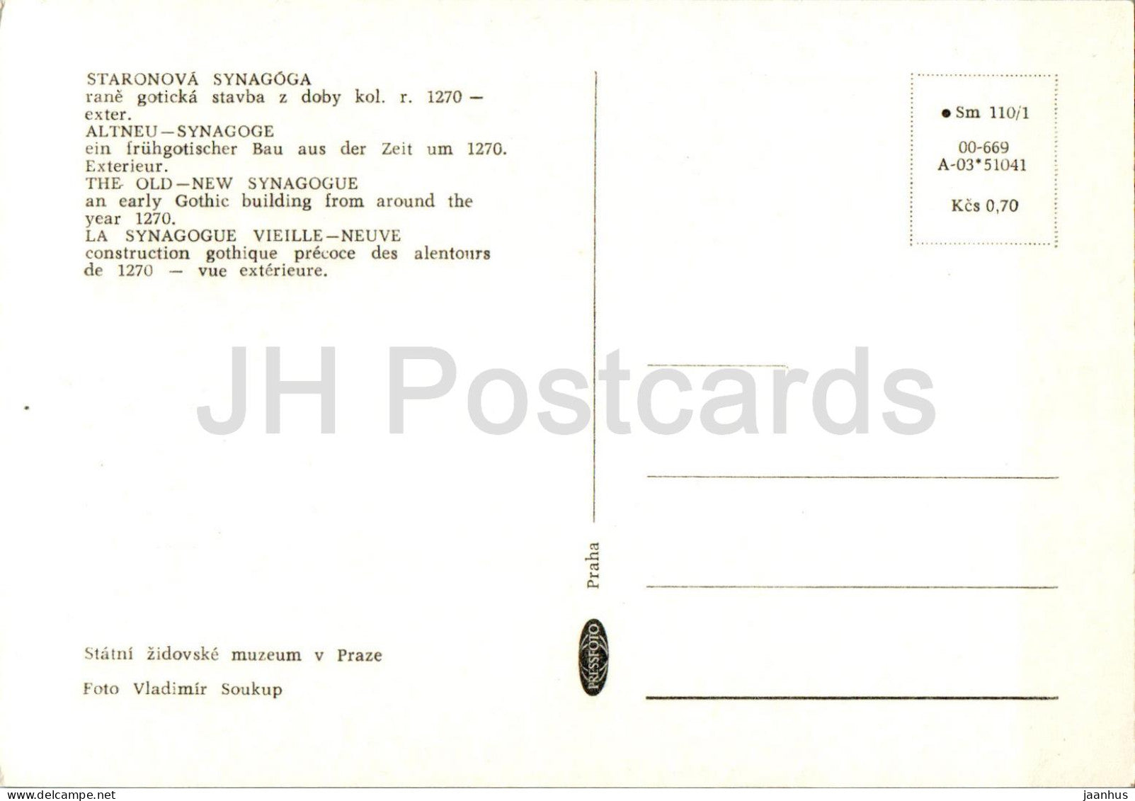 Praha - Prag - Stranova Synagoga - Die Altneue Synagoge - Tschechische Republik - Tschechoslowakei - unbenutzt