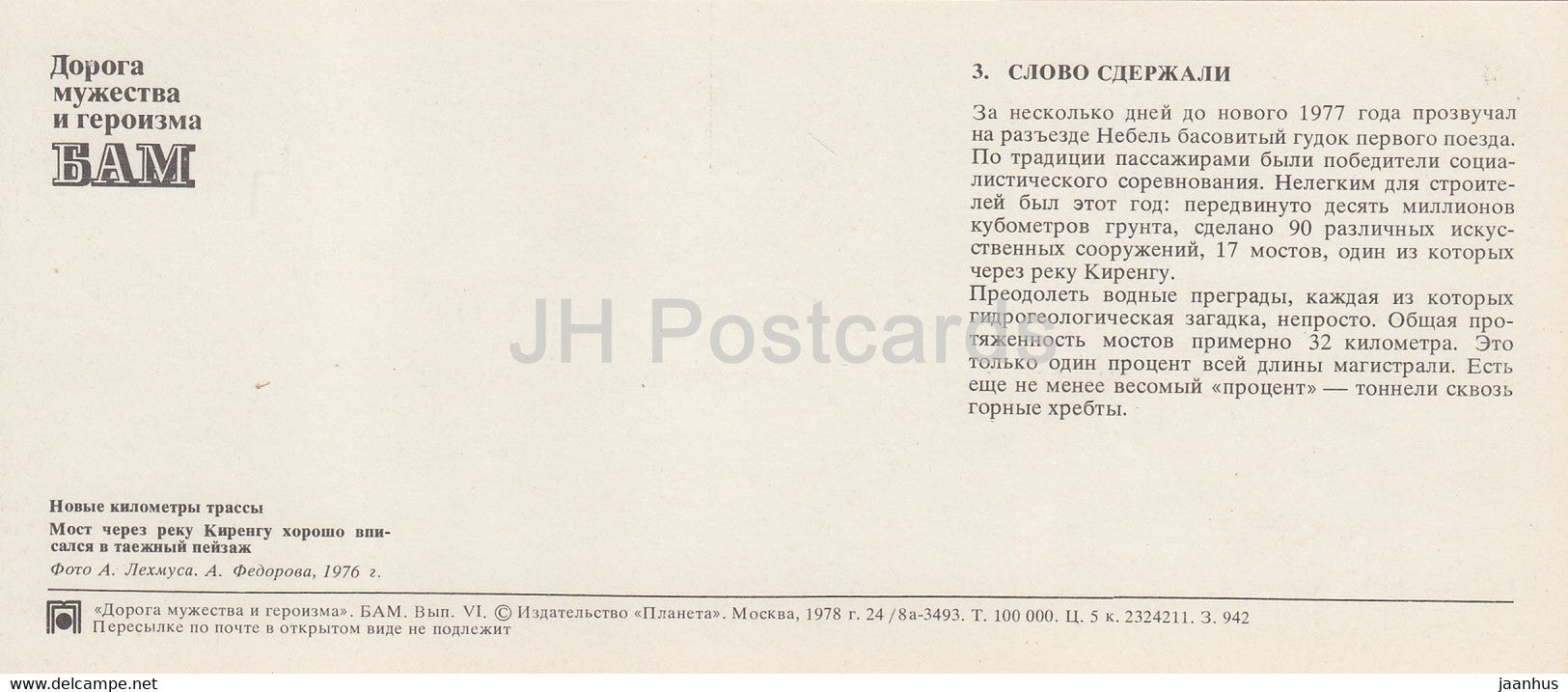 Eisenbahnbrücke - 1 - BAM - Baikal-Amur-Magistrale, Bau der Eisenbahn - 1978 - Russland UdSSR - unbenutzt