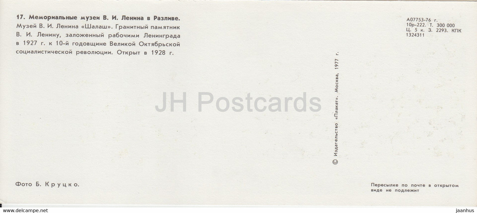 Razliv – Lenin-Museum – Granitdenkmal für Lenin – 1977 – Russland UdSSR – unbenutzt