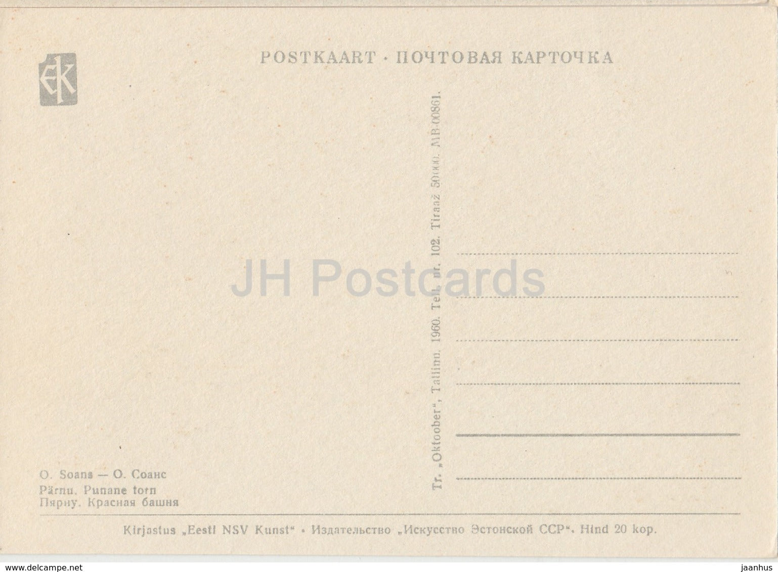 Roter Turm - Parnu - Illustration von O. Soans - 1960 - Estland UdSSR - unbenutzt