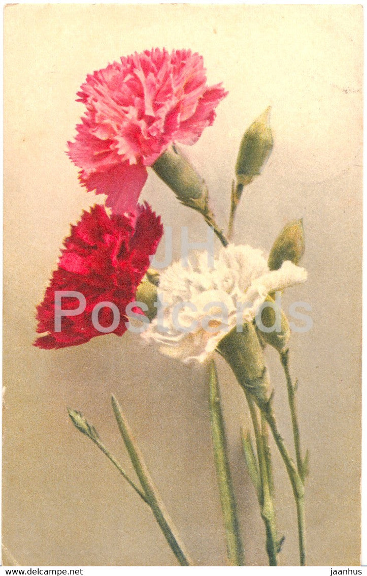 Rote weiße Nelke - Blumen - Paul Bender - alte Postkarte - 1930 - Schweiz - gebraucht