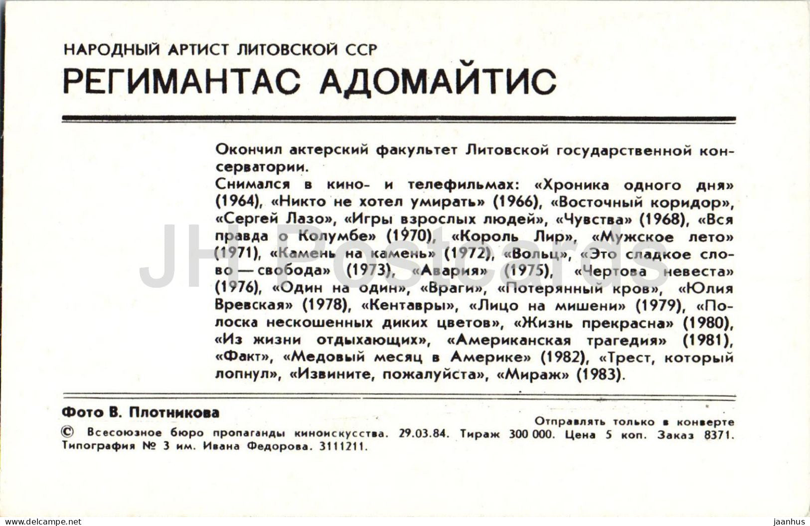 Regimantas Adomaitis – Sowjet – litauischer Schauspieler – 1984 – Russland UdSSR – unbenutzt
