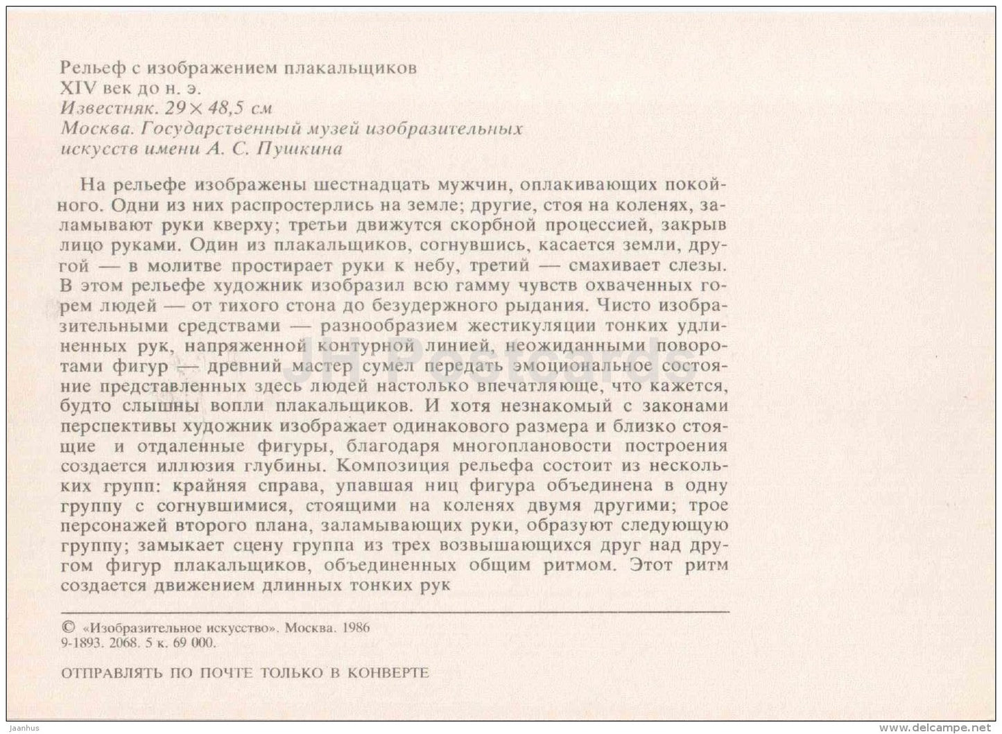 Relief mit Trauernden – Kunst des alten Ägypten – 1986 – Russland UdSSR – unbenutzt