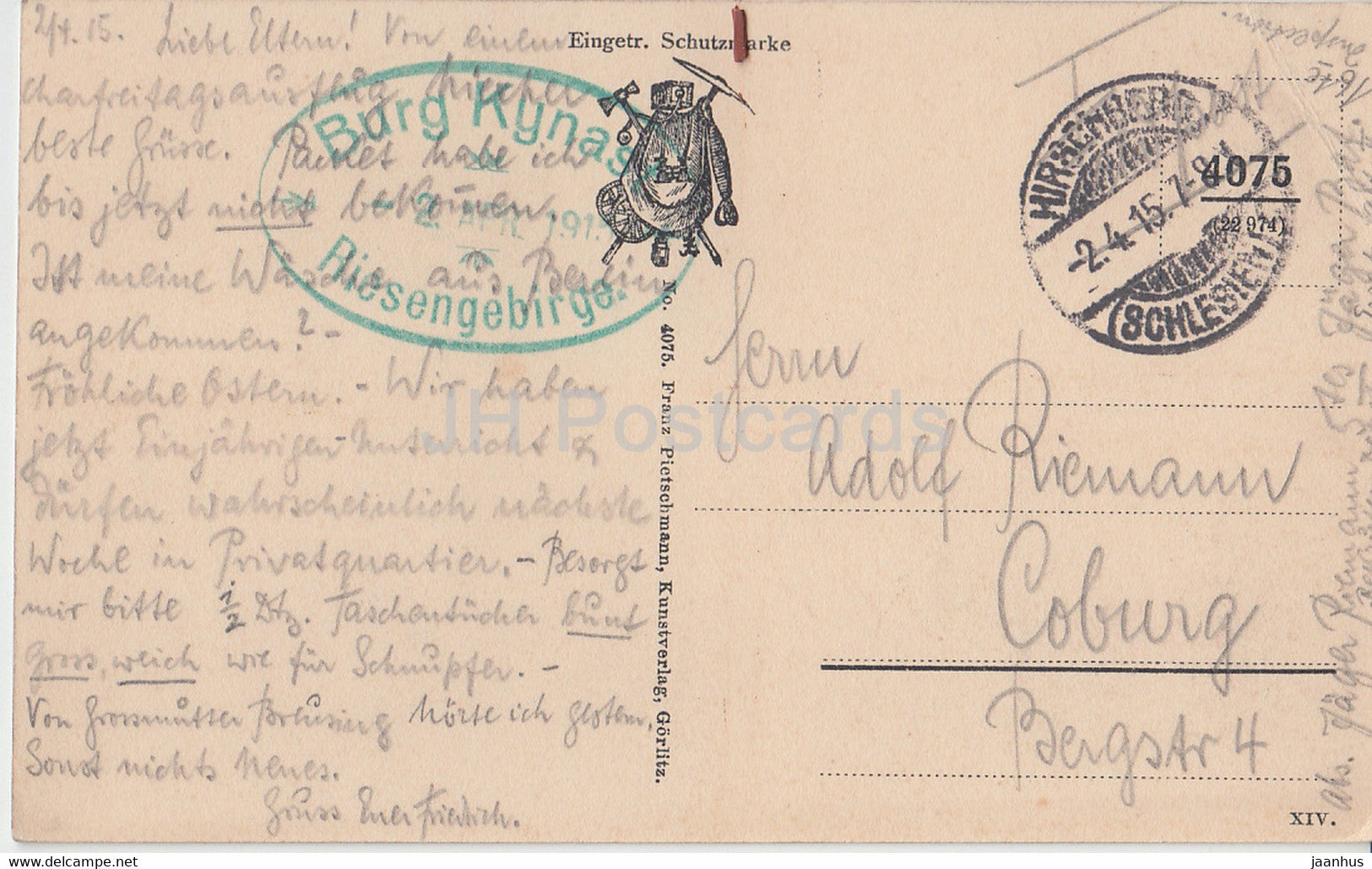 Riesengebirge - Ruine Kynast 657 m - Burg Kynast - Sniezne Kotly - 4075 - alte Postkarte - 1915 - Polen - gebraucht