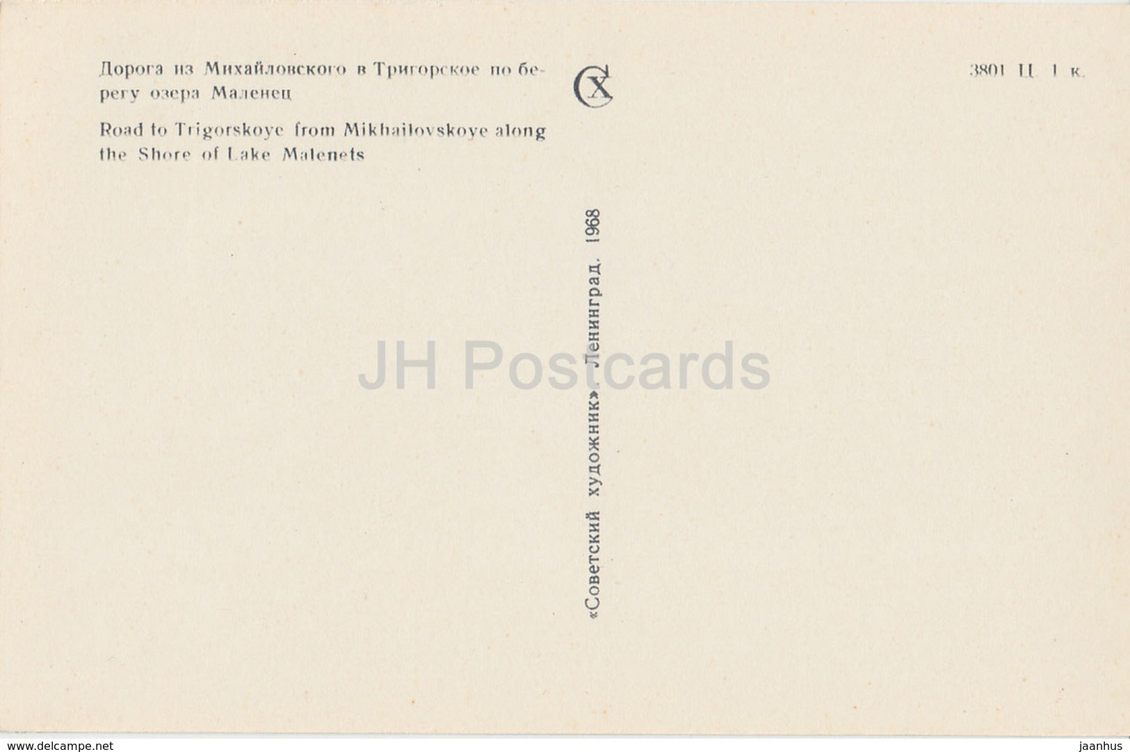 Straße nach Trigorskoje von Michailowskoje entlang des Malenets-Sees – Naturschutzgebiet Puschkin – 1968 – Russland UdSSR – unbenutzt