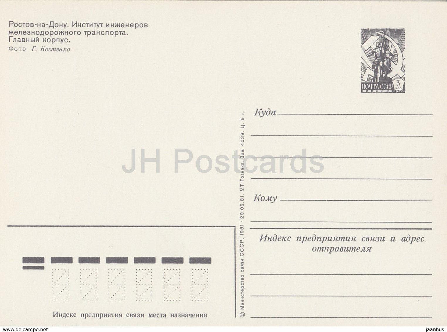 Rostow am Don - Rostow am Don - Institut für Eisenbahningenieure - Ganzsache - 1981 - Russland UdSSR - unbenutzt