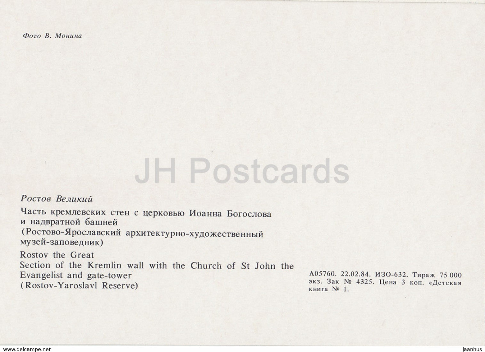 Rostow Weliki – Abschnitt der Kremlmauer mit der Kirche des Hl. Johannes des Evangelisten – 1984 – Russland UdSSR – unbenutzt