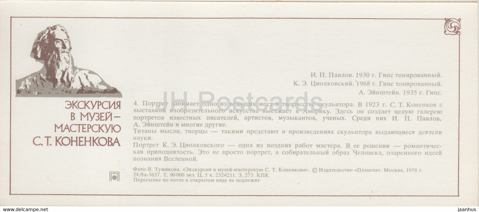 Russischer Bildhauer S. Konenkov Museum – Wissenschaftler – I. Pavlov – K. Tsiolkovsky – A. Einstein 1978 – Russland UdSSR – unbenutzt