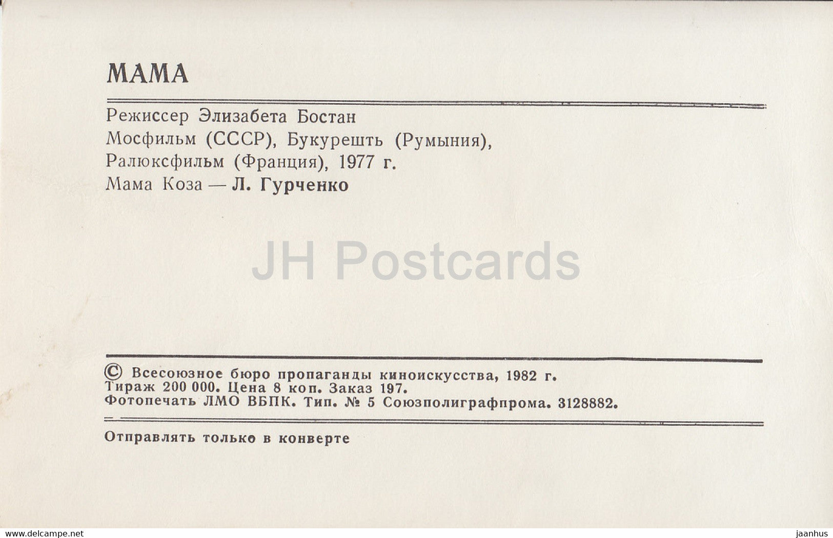 Russische sowjetische Filmschauspielerin Lyudmila Gurchenko – Mutter – 1982 – Russland UdSSR – unbenutzt