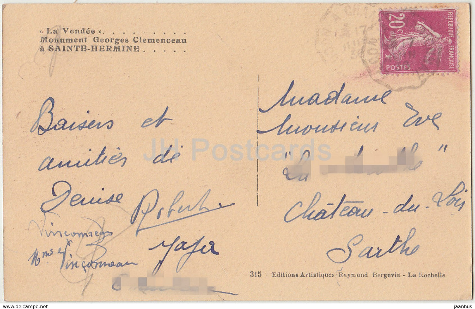 Sainte Hermine - Denkmal Georges Clemenceau - alte Postkarte - 1936 - Frankreich - gebraucht