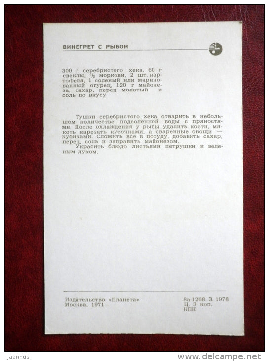 Salat mit Fisch - Fischfutter - Kochrezepte - 1971 - Russland UdSSR - unbenutzt