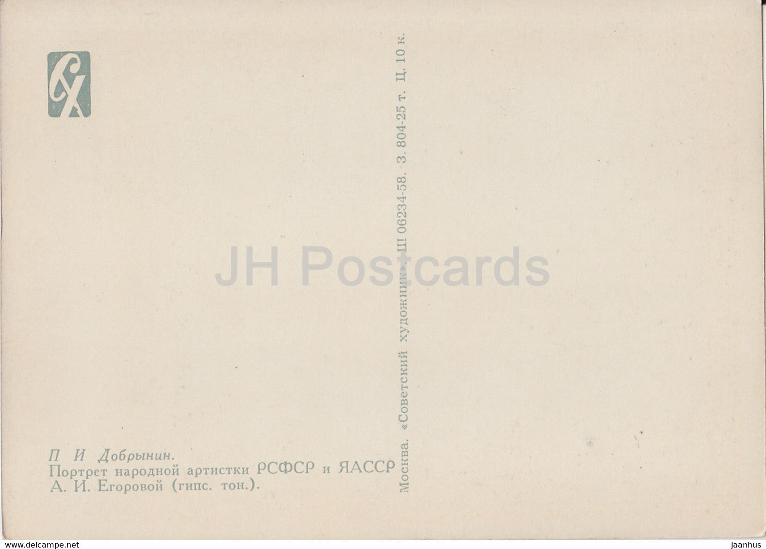 Skulptur von P. Dobrynin – Porträt der Volkskünstlerin Egorova – Jakutien Sacha Russische Kunst – 1958 – Russland UdSSR – unbenutzt