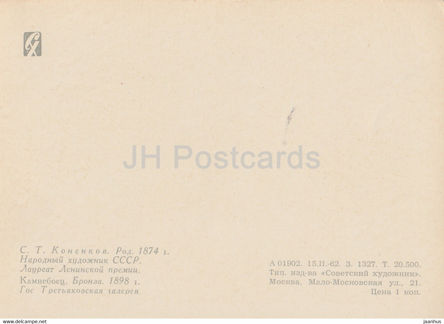 Skulptur von S. Konenkov – Steinbrecher – Russische Kunst – 1962 – Russland UdSSR – unbenutzt