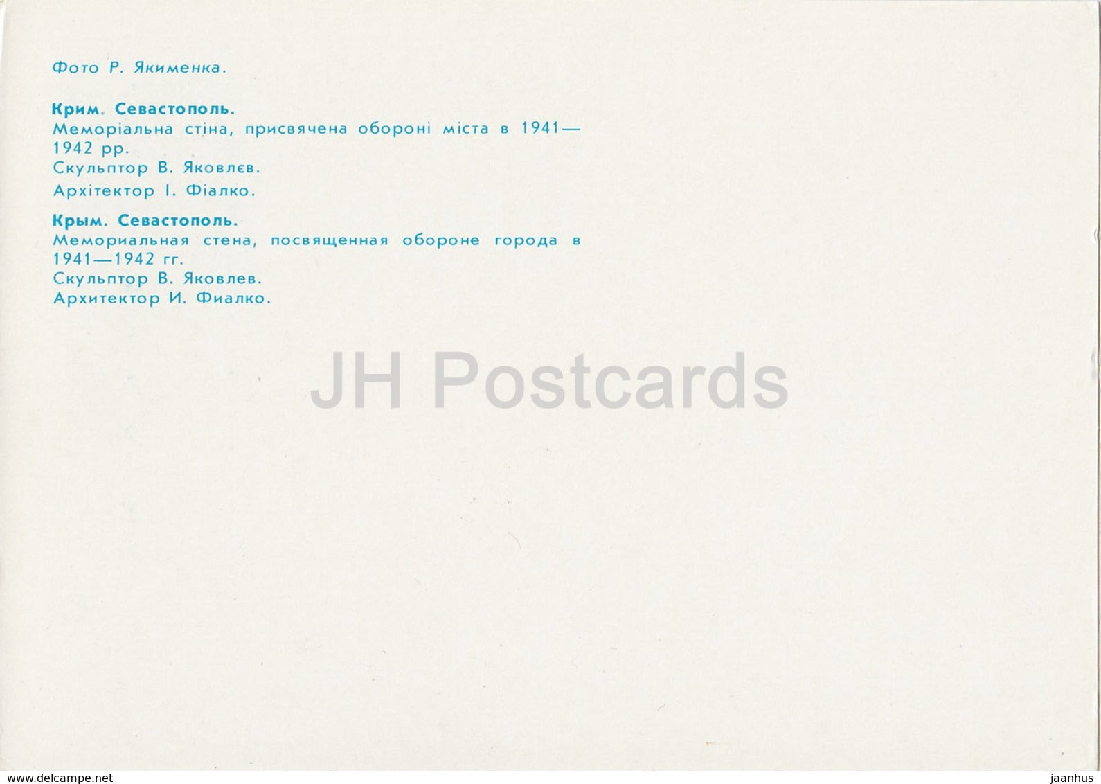 Sewastopol – Gedenkmauer zur Verteidigung der Stadt 1941-1942 – Krim – Ukraine UdSSR – unbenutzt