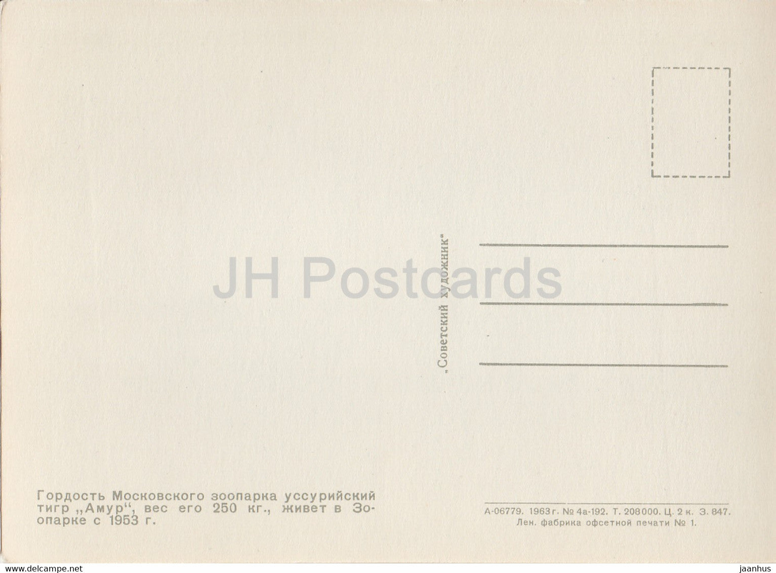 Sibirischer Tiger - Panthera tigris altaica - Moskauer Zoo - 1963 - Russland UdSSR - unbenutzt