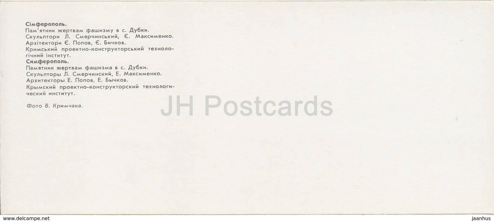 Simferopol – Denkmal für Opfer des Faschismus in Dubki – Technisches Institut der Krim – 1983 – Ukraine UdSSR – unbenutzt